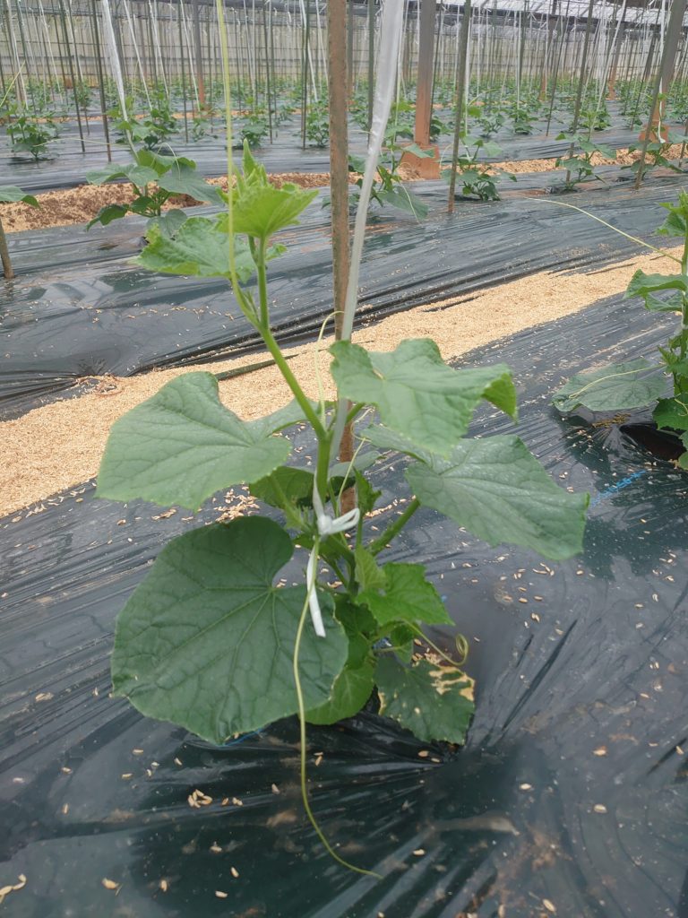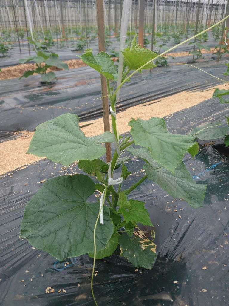 こんな感じできゅうりを管理しています。さすがに企業秘密の部分もあるんですが、こうやってできる範囲で作物の成長過程をお届けしていきたいと思います。