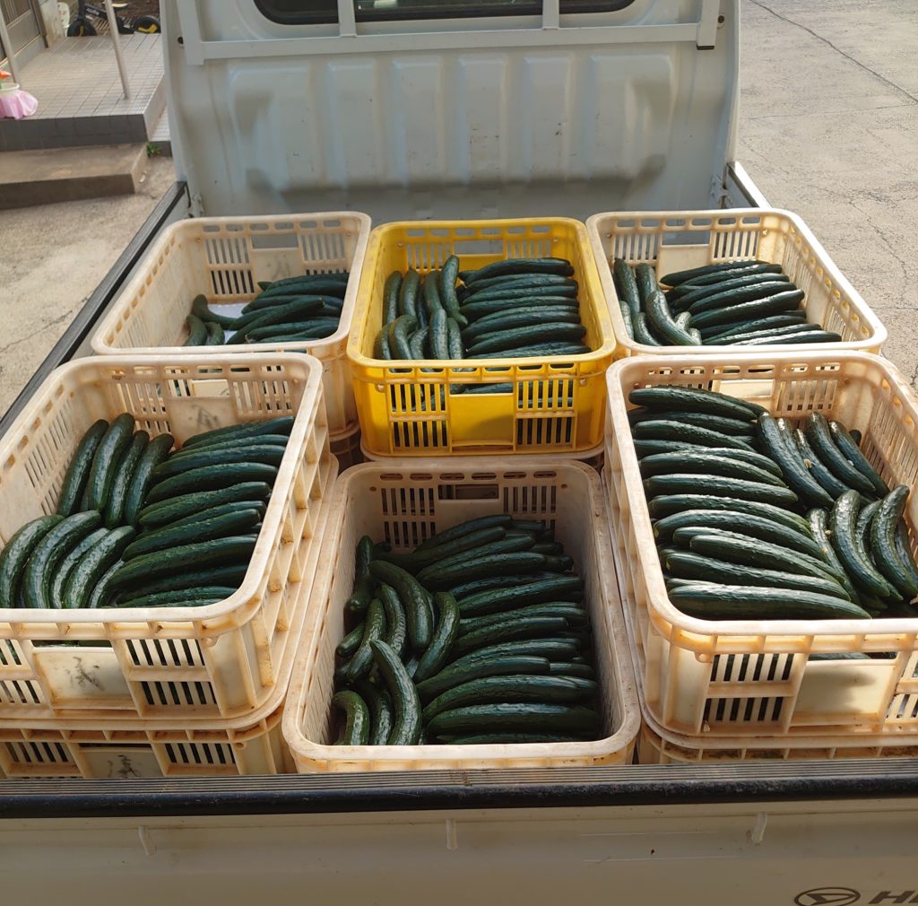 2日前に収穫量が7キロだったきゅうりがなんと120キロ!!ちょっとなりすぎましたね(笑)。