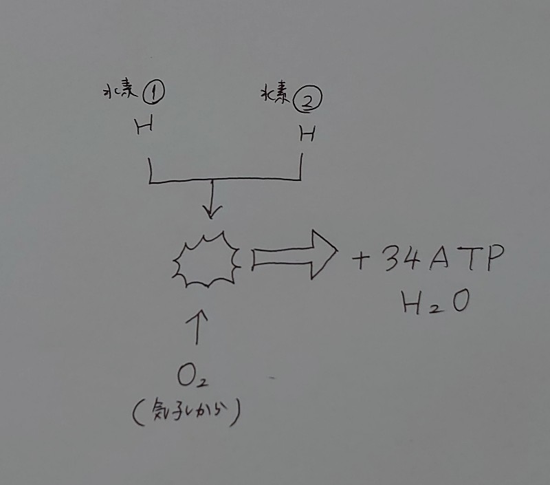 そのエネルギーなんと34ATPです。呼吸の過程全てを合わせると38ATPとなります。すごい数ですよね。呼吸って生命を維持するために必要不可欠なものという考えもあるでしょうが実際は生命を維持するための大量のエネルギーを得るための必要不可欠なものという考えが正しいのかもしれません。